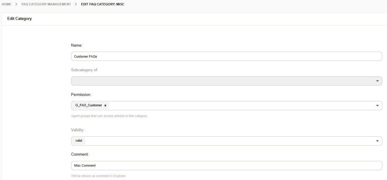 Just showing all categories to your customers may not be the use case you want for your organization. If you activate the framework option CustomerGroupSupport and enable the FAQ configuration item FAQ::CustomerUserPermissions###Enabled, you can now assign your customers groups, to which they can see special categories in the FAQ module.